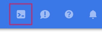 Click on the Cloud Shell icon (leftmost icon in the set of icons at top-right of the page).