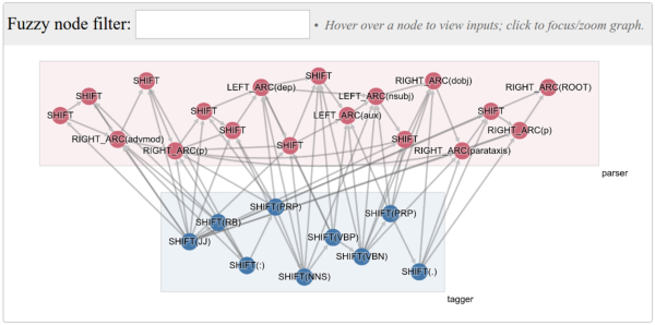 DRAGNN is a modular framework: unlike vanilla TensorFlow RNN’s, DRAGNN’s must be defined in terms of re-usable pieces. To define a complete model, we first specify how these pieces should be connected to construct the model we want, and then we pass this specification to the GraphBuilder.